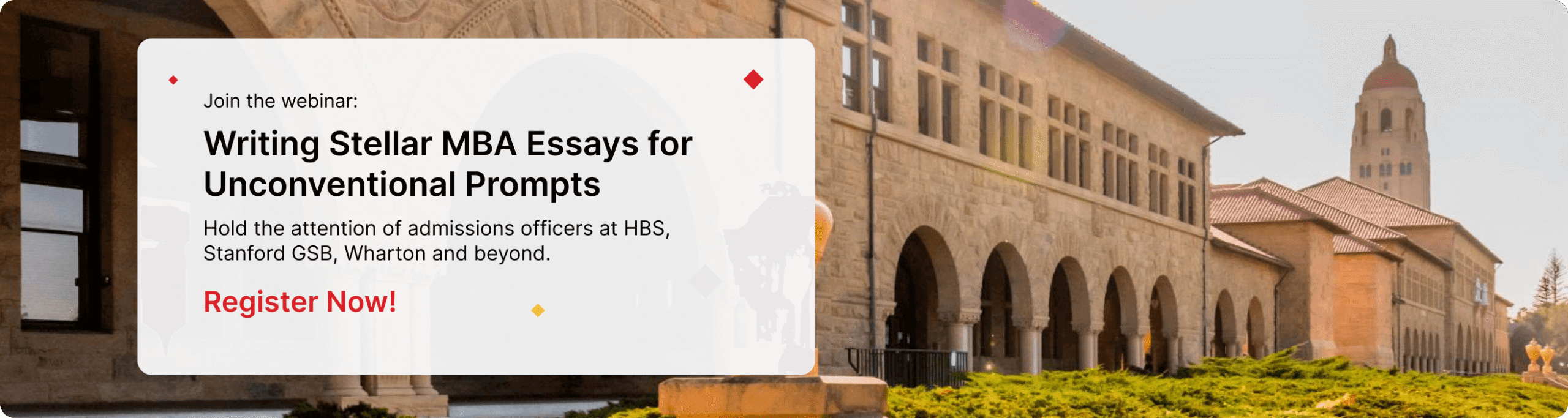 Don’t let unconventional essay prompts scare you. This webinar focuses on crafting MBA application essays that stand out, especially when faced with unconventional prompts.